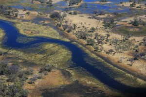 Eight hundred miles from the Atlantic and a thousand from the Indian Ocean, the Okavango Delta looks like a miniature version of the earth from the air, an expanded jigsaw of land swirls amid deep and spreading blue. Its water seeps up through the soil, having landed as monsoon rain a thousand miles north in Angola. It’s long been protected, both by government intervention and because its soggy, swampy nature makes building roads here impossible.