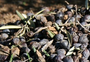 Some trees vibrate as we drive past, olives dropping onto the floor like jelly beans spilling from a child’s party plate. The machine that makes this happen, a small hook on the end of a metal pole, is as high tech as it gets. Most olives get beaten out of the tree with a stick.