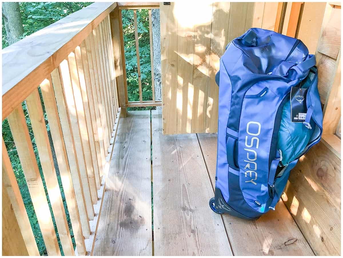 First of all, I like the massive size. There’s a range of options (40, 90 and 120 litres) but when travelling with family, especially when glamping, size is great. There’s extra bedding, slings, sheets, towels, nappies and all sorts that even the luxest glamping establishment doesn’t provide.