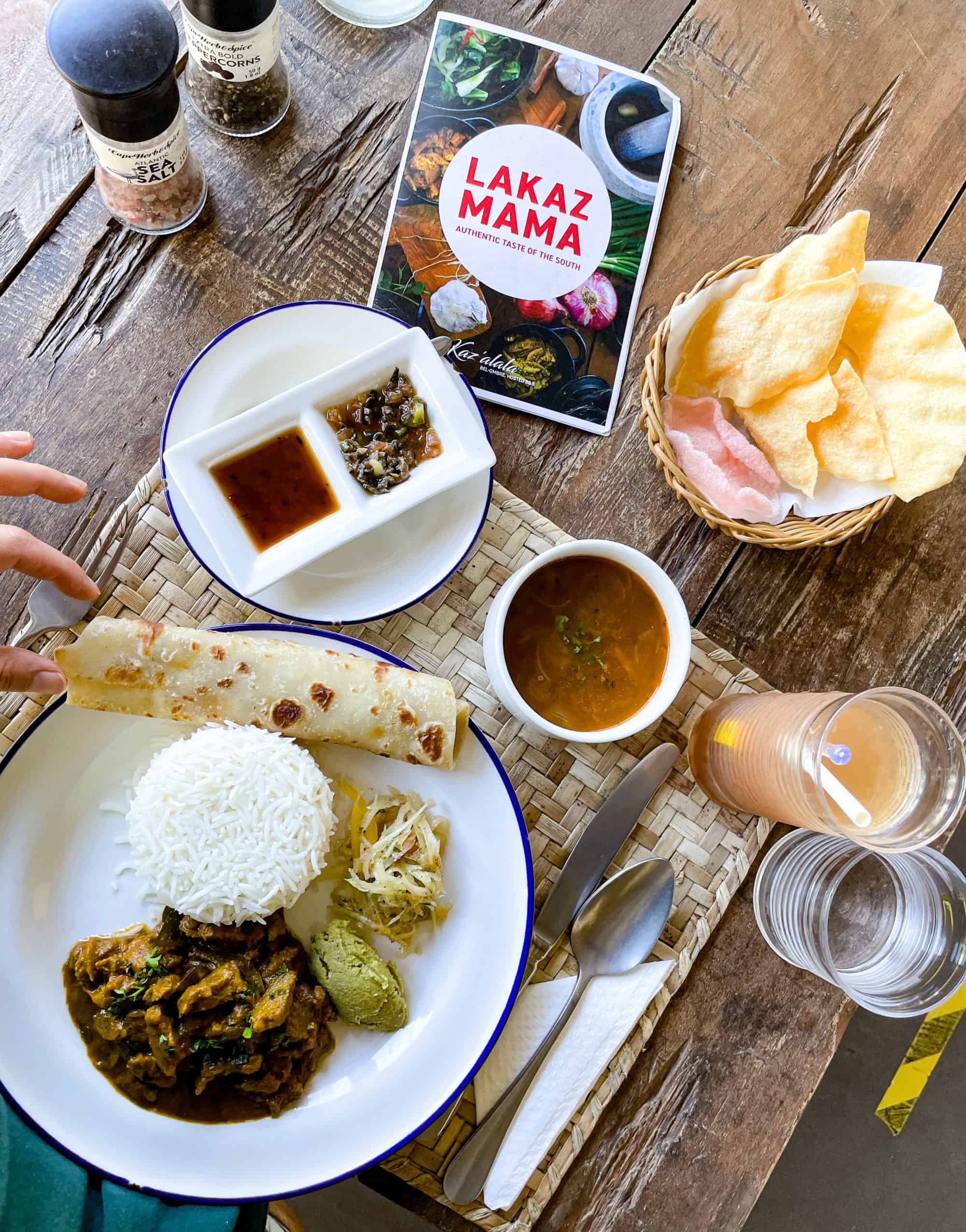 Options from the Tab’Diri at Chamarel Restaurant