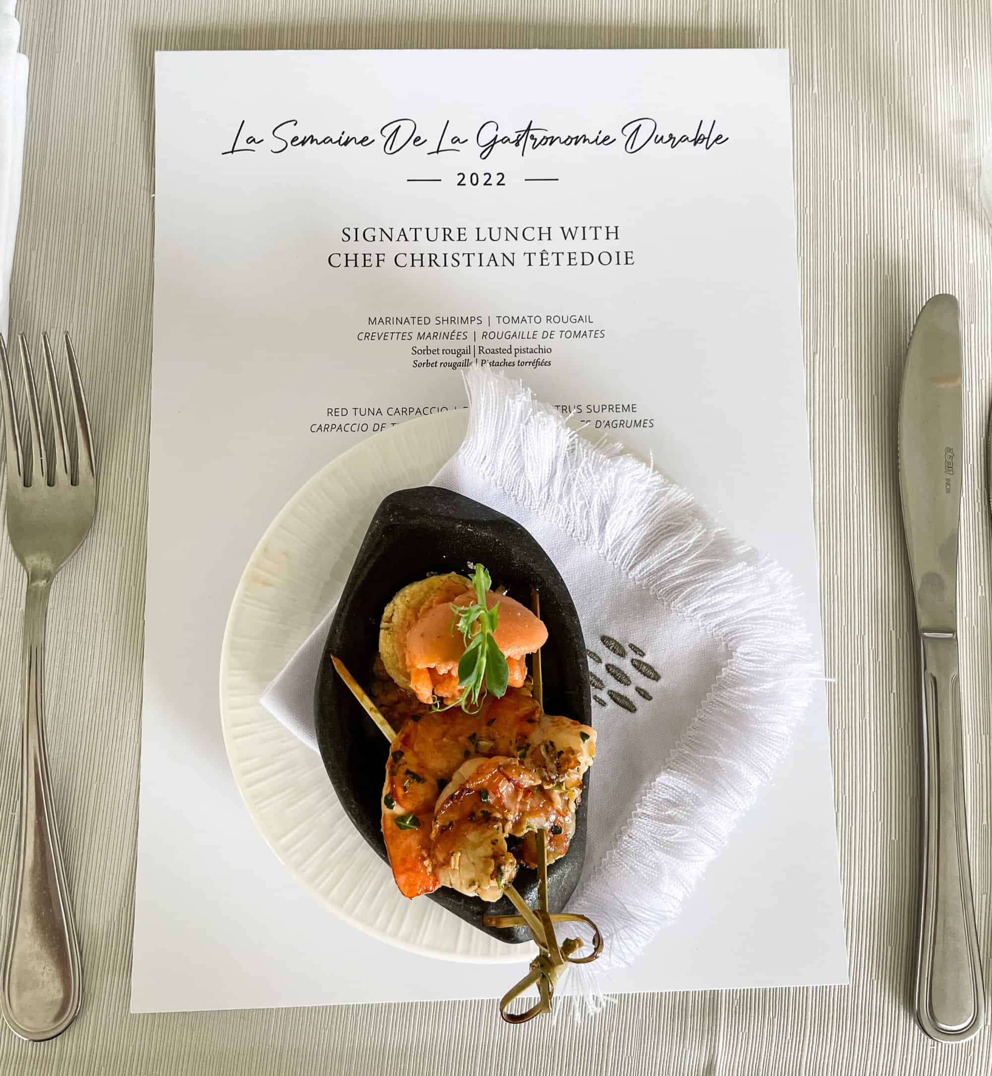 What if someone could arrange a series of different sustainable culinary events and schedule them for the same week in the same, beautiful place? Perhaps they could invite an expert on the topic to guide and inspire everyone who came. To encourage conversations between travellers and local businesses to build a more sustainable future. That’s exactly what happened in Mauritius with La Semaine de la Gastronomie Durable which first took place in 2022. And it was headed up by Michelin-starred chef Christian Têtedoie.