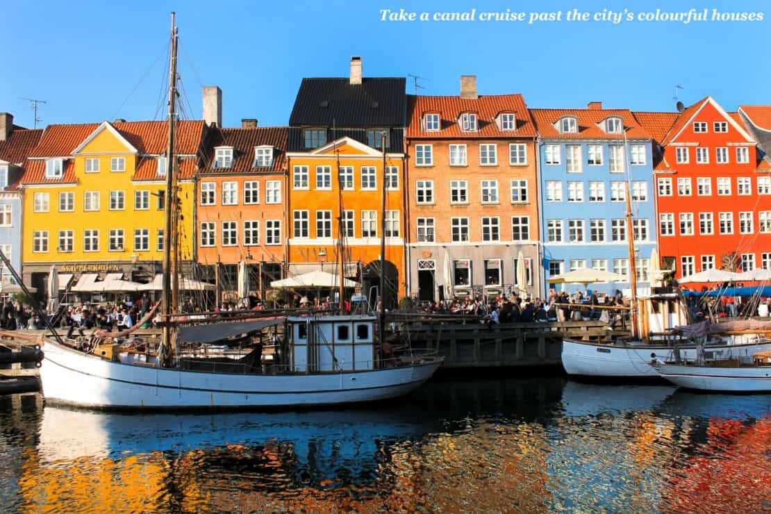 Boats docked by colourful houses in Copenhagen, Denmark - 48 hours in Copenhagen
