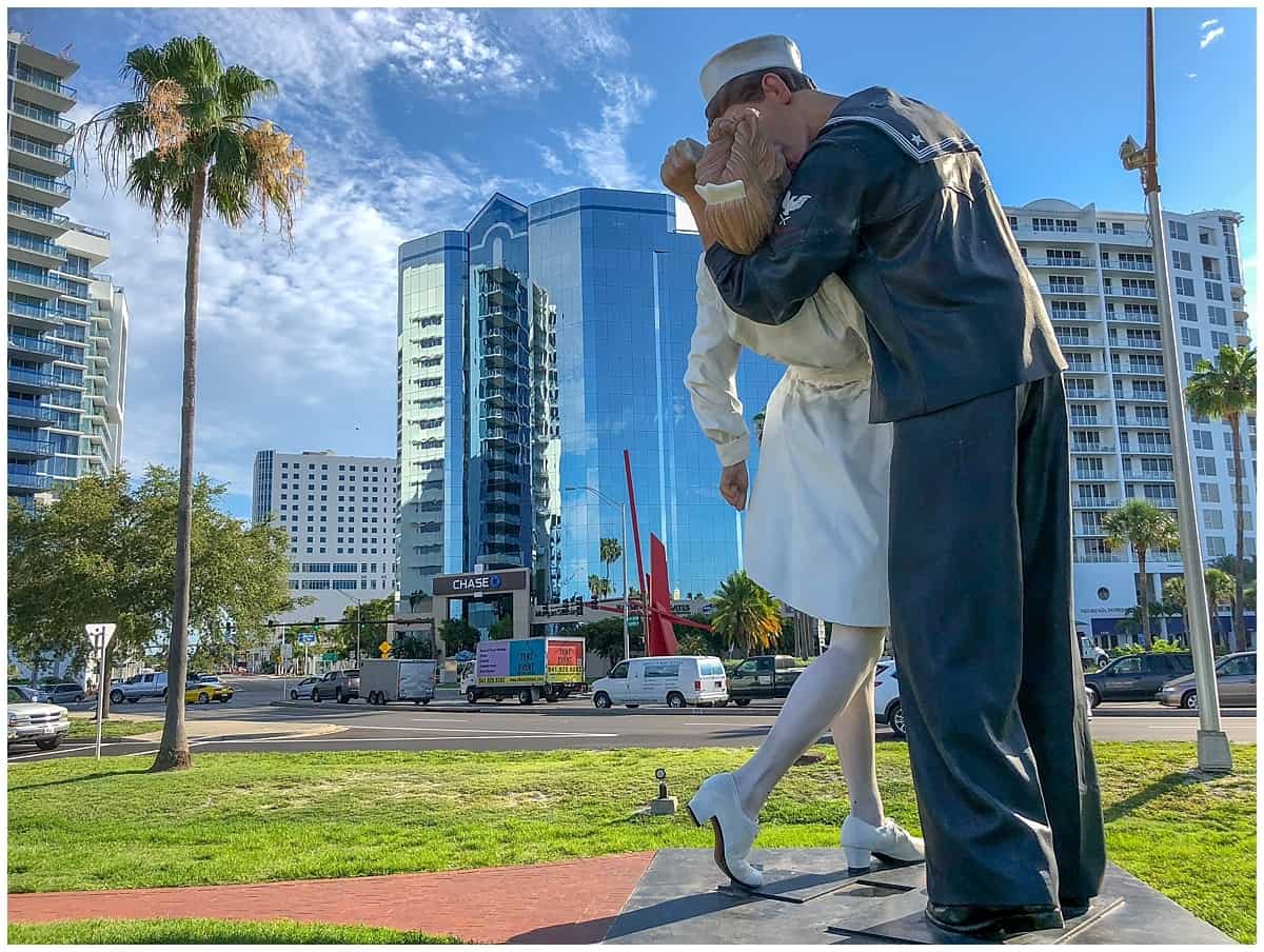 • Kiss beneath Unconditional Surrender on Bayfront Park