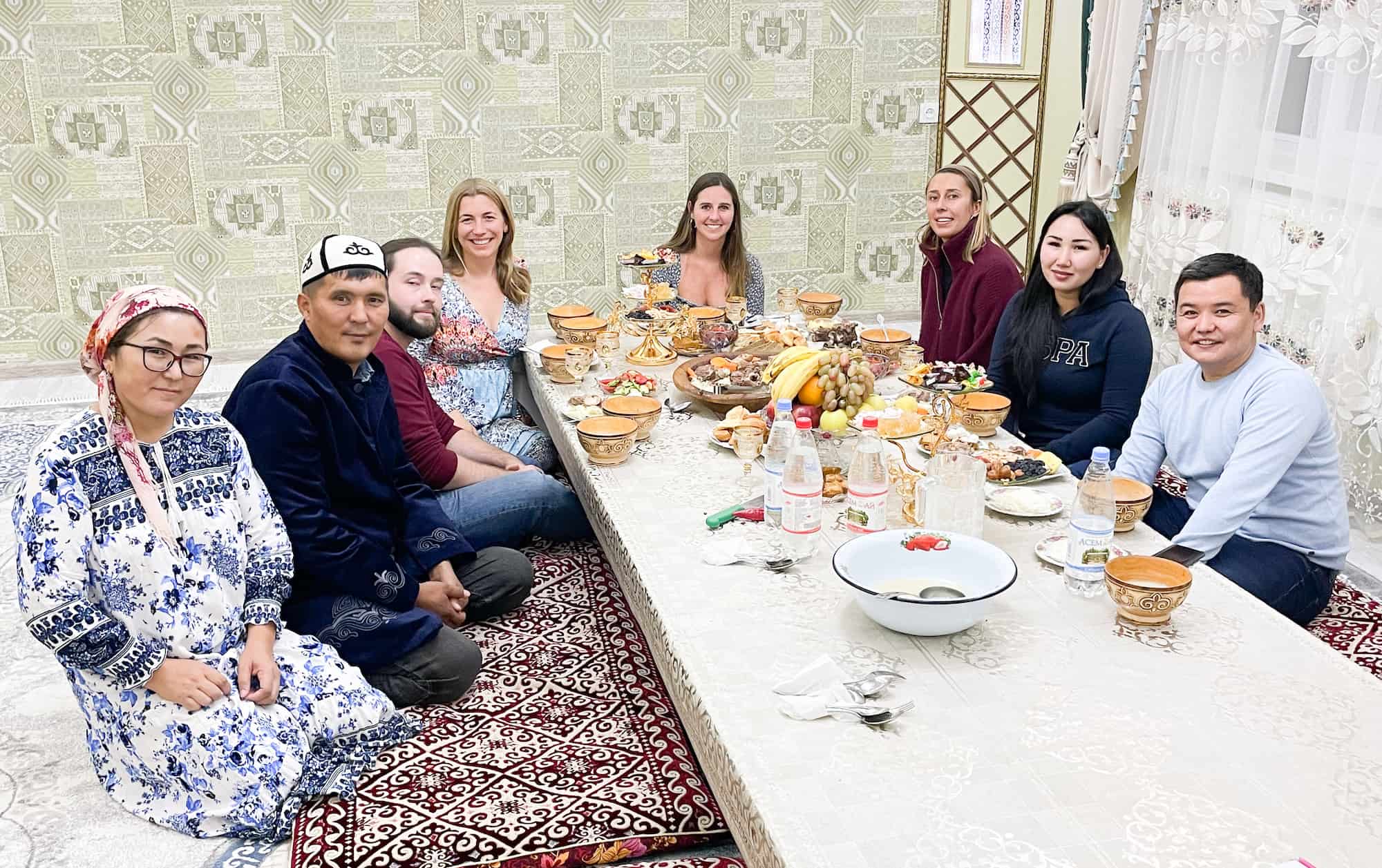 Gulzira, his wife and local maths teacher, poured tea from the Russian samovar to complete what we had shared as the main meal: the beshbarmak.