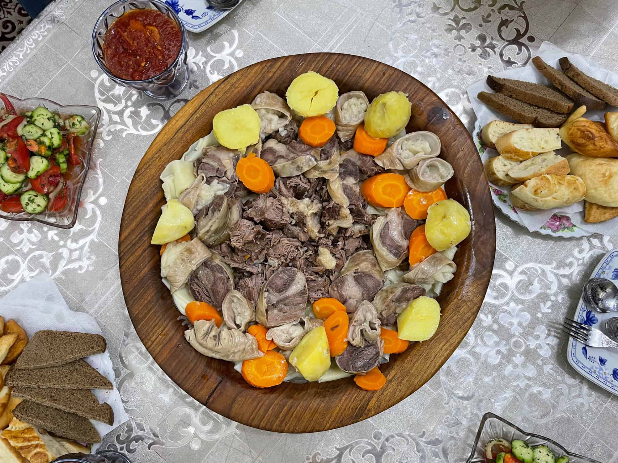 Beshbarmak is not the kind of meal people throw together at the end of the workday while they’re in a rush. It’s something that’s designed to be shared and celebrated, with a ritual involved every step of the way.