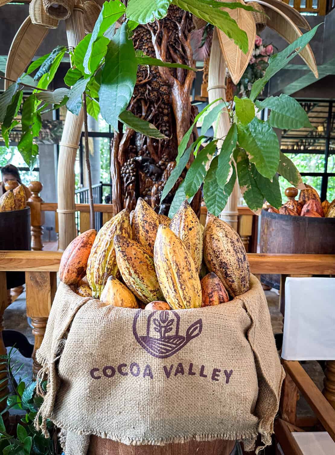 Cocoa Valley sack bag of cocoa plants in Nan Thailand
