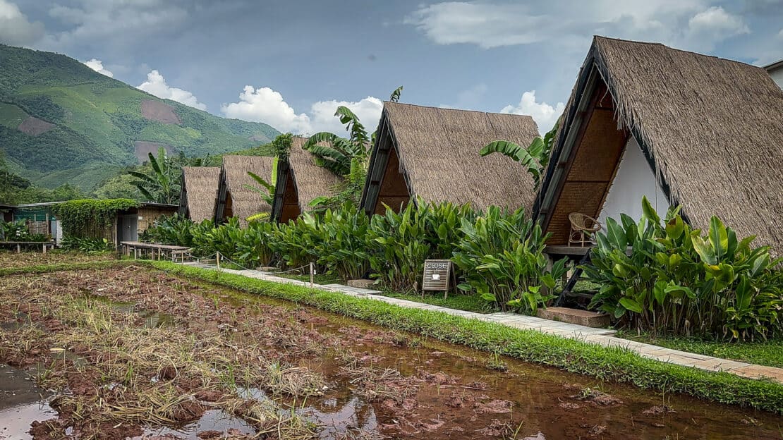 Glamping cabins in the countryside and landscape of Sapan in North Thailand
