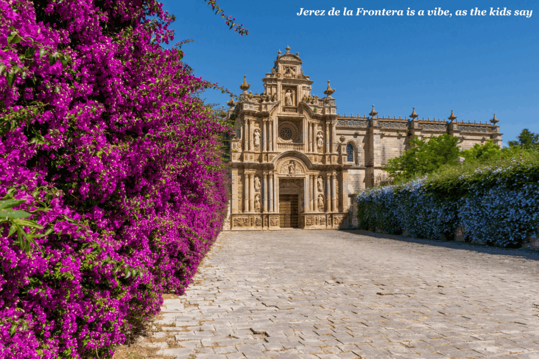Monastery and purple flowers in Jerez de la Frontera, Spain - Best Things to Do in Spain in October