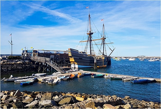 A replica ship, the Mayflower II, now stands where they docked, while a tiny rock claims to mark where they first stepped on American soil.