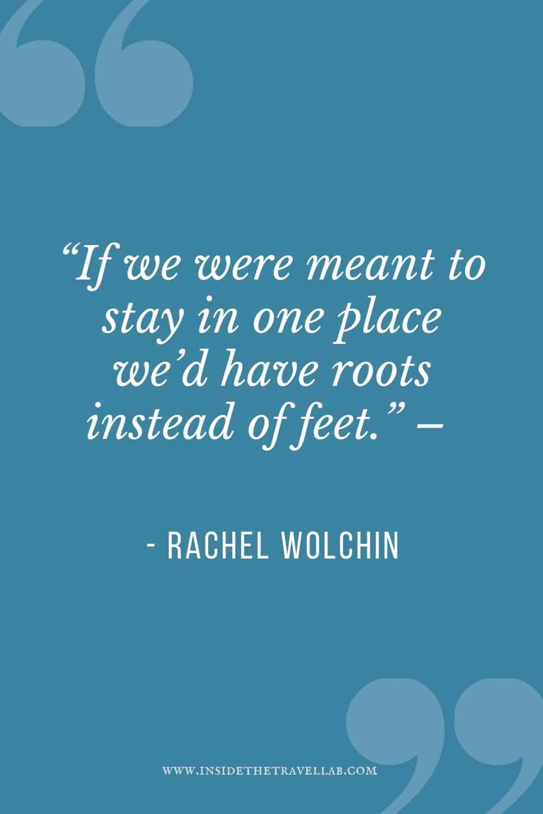 “If we were meant to stay in one place we’d have roots instead of feet.” – Rachel Wolchin