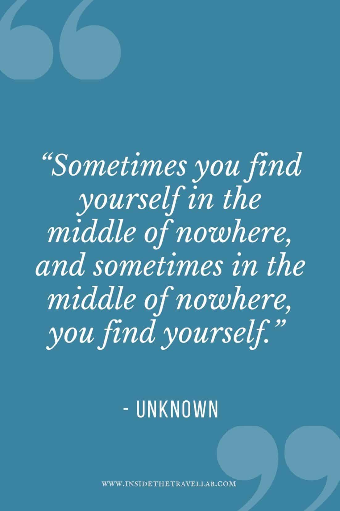 “Sometimes you find yourself in the middle of nowhere, and sometimes in the middle of nowhere, you find yourself.” — Unknown