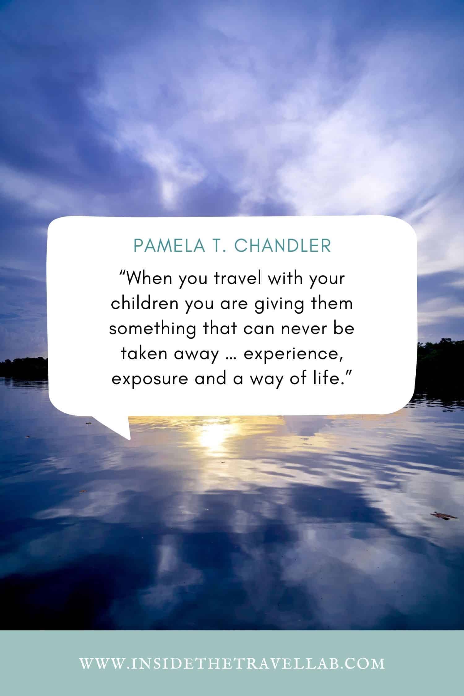 “When you travel with your children you are giving them something that can never be taken away … experience, exposure and a way of life.” – Pamela T. Chandler