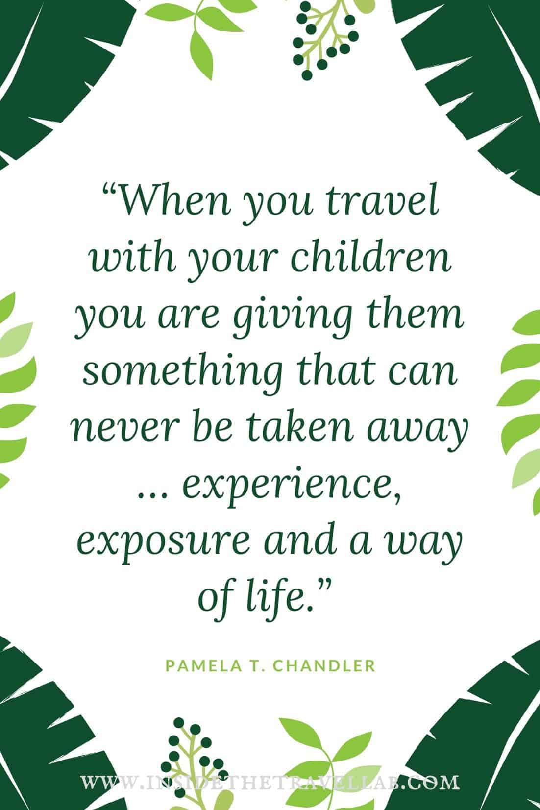 “When you travel with children you are giving something that can never be taken away… experience, exposure and a way of life.” – Pamela T. Chandler