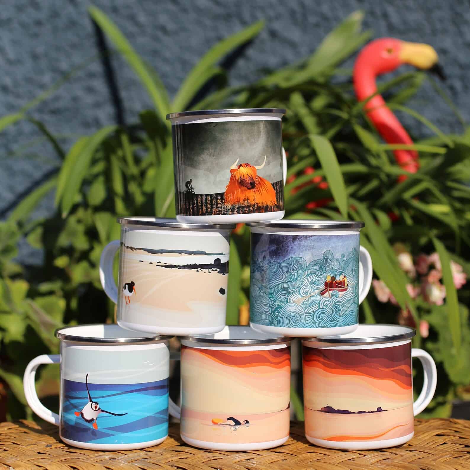 Travel with a mug and the outdoors is yours. Nothing beats a hot cup of tea or a cool mug of water when you’re on the road. And these designs from Wyllie Cat Designs inject humour and art into the everyday as well.