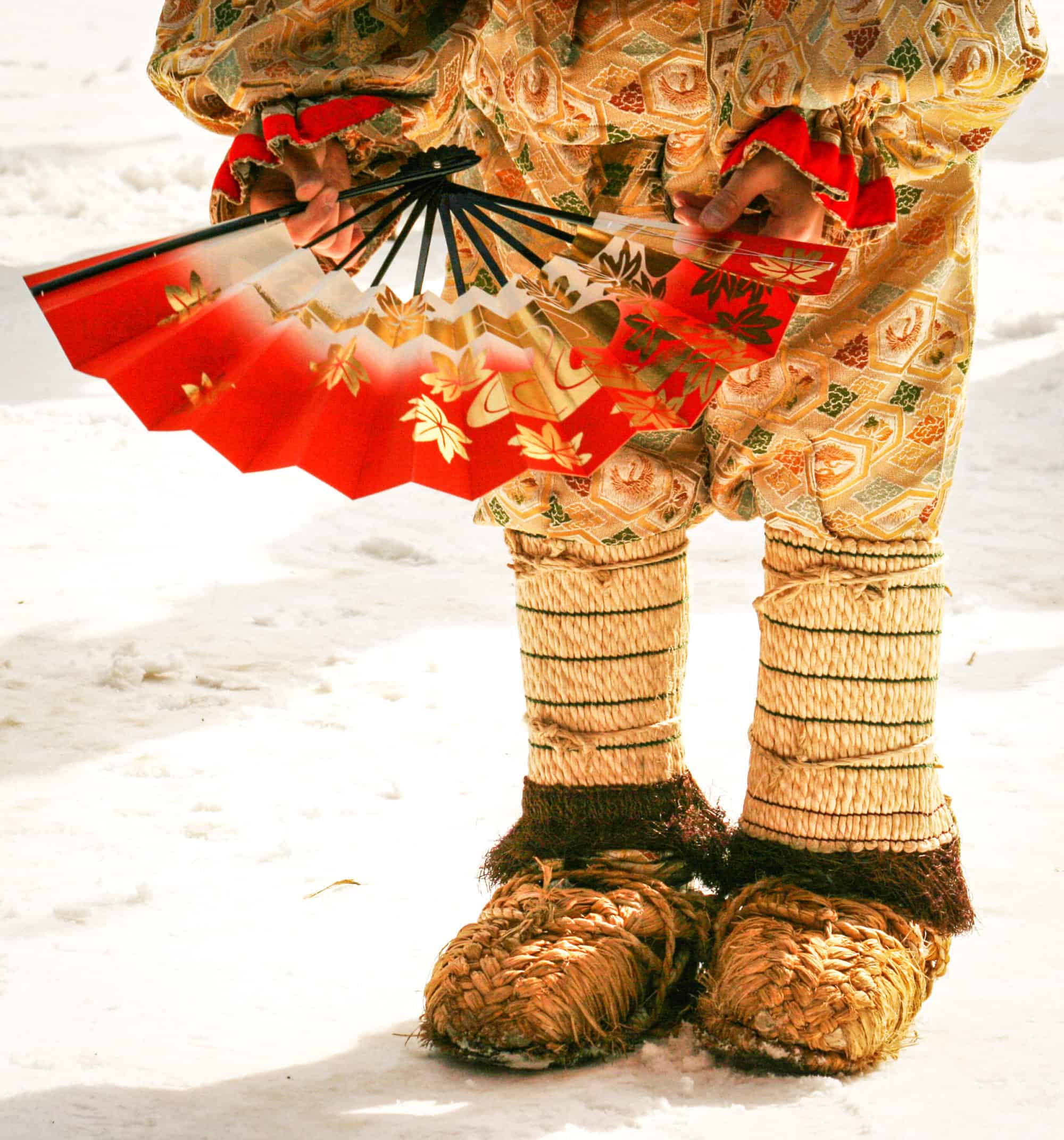From children to elders, dancers to musicians, all are decked out in the traditional footwear of Aomori. Straw-woven shoes with straw gaiters to match. My feet turn numb just from looking at them.