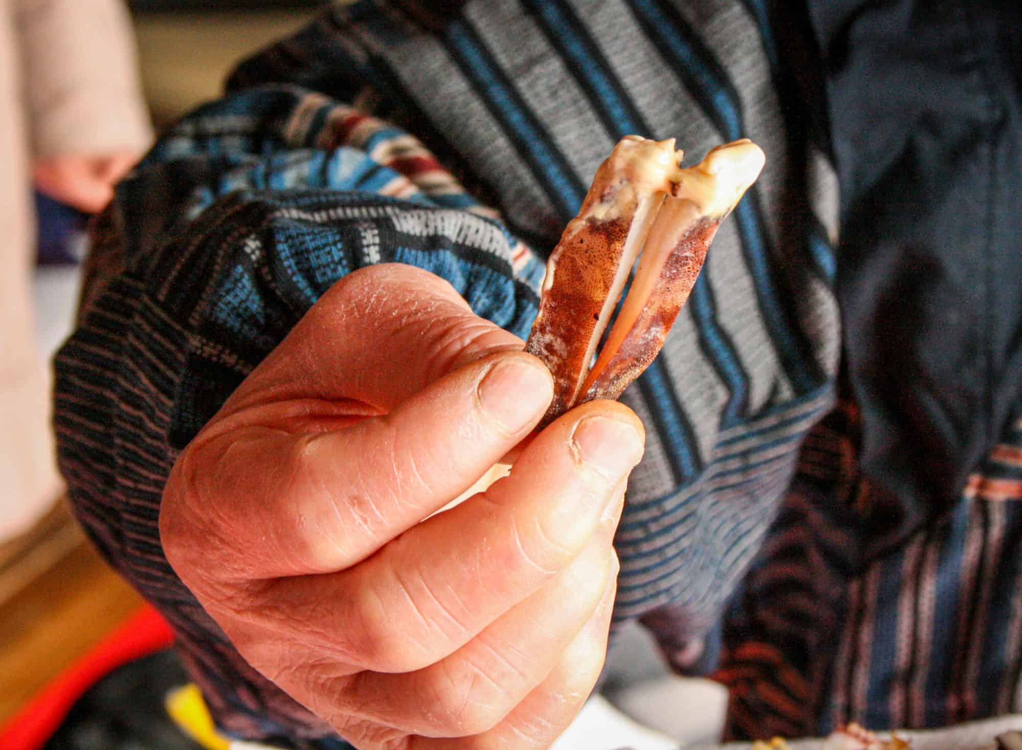 The wind laughs at my predicament, while the cold makes itself at home in my bones. I break open a crystal packet to warm up my hands and accept more octopus gladly.