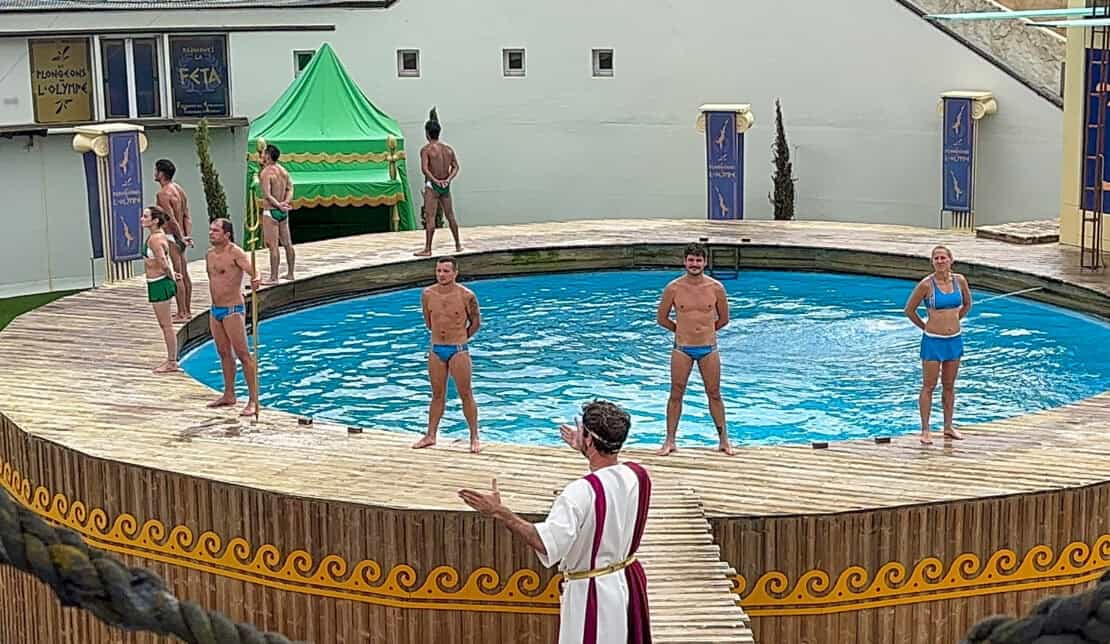 We saw the musical comedy “C’est du Délire!”, featuring characters Groupidupianix and Serotonin. We also caught “Du Rififi dans la Basse-Cour”set in the Gaulish Village, and “Les Plongeons de l’Olympe”, a spectacular diving performance.