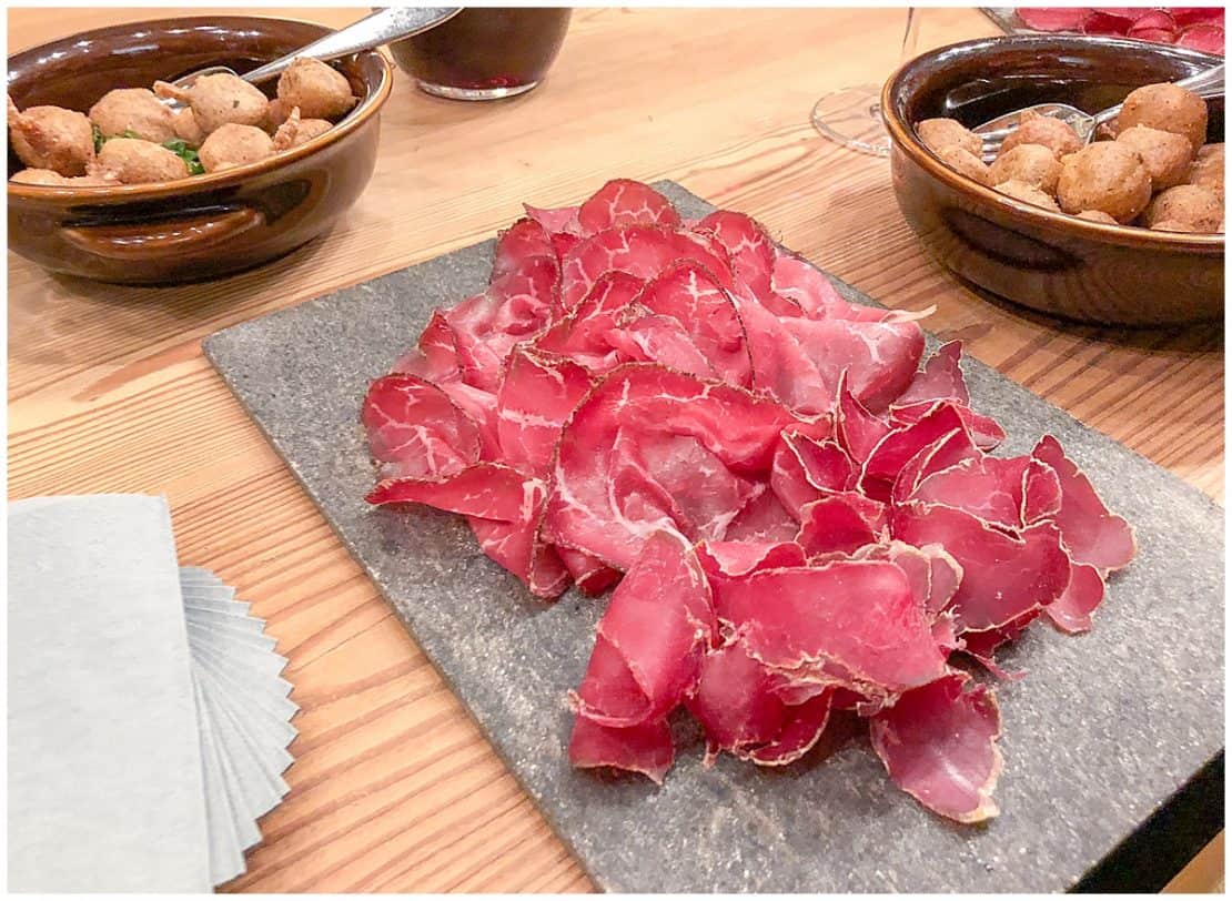 Bresaola, from the area around Chiavenna north of Milan, also deserves a place on your charcuterie platter, its herb infused slices of beef a treat with an aperitif.