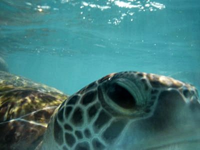 Close up image of a turtle's eye underwater in Barbados - Jamaica vs Barbados