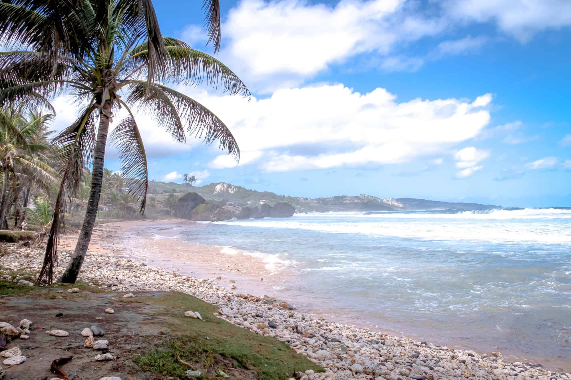 Windswept sandy beach and palm trees in Barbados - Jamaica vs Barbados