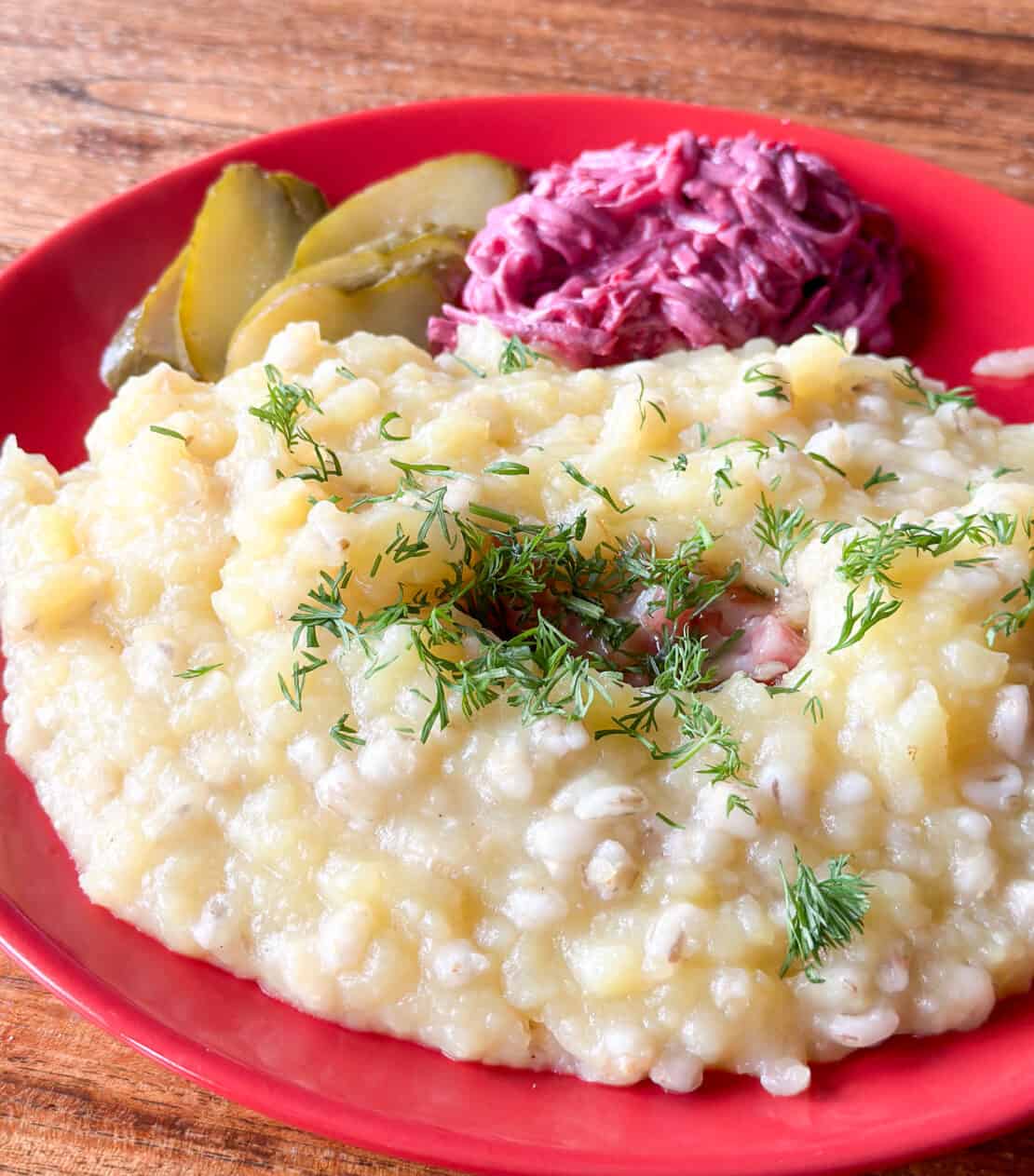 Mudpilger porridge is a traditional Estonian dish known for its hearty and comforting nature. Comprising a blend of grains, typically barley and oats, this porridge is often enriched with local ingredients like berries or nuts for added flavour and nutritional value. Its rustic appeal makes it a staple, reflecting Estonia’s culinary heritage and a preference for wholesome, locally-sourced ingredients.