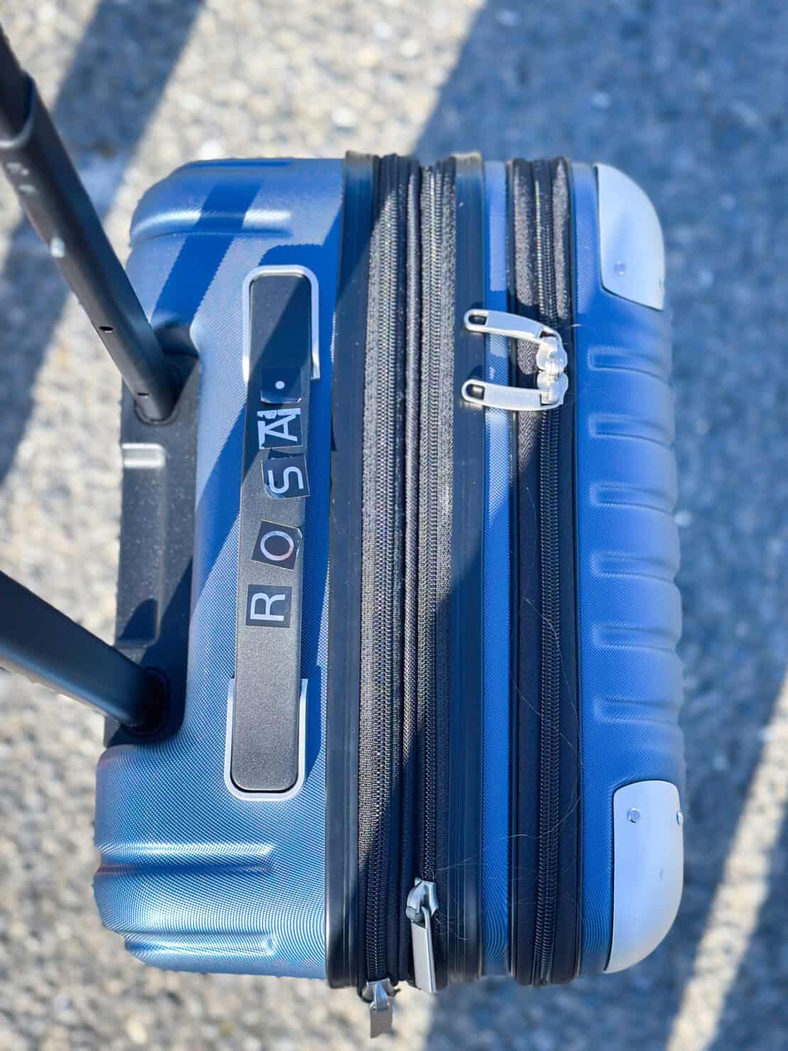 Child's name in letters on a blue suitcase -  Level 8 Grace luggage review