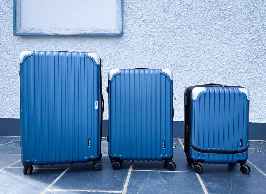 Three blue suitcases in a row - Level 8 Grace luggage review