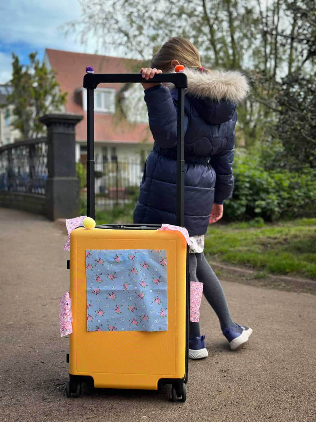Child wheels a decorated Level8 suitcase, Level8 luggage review