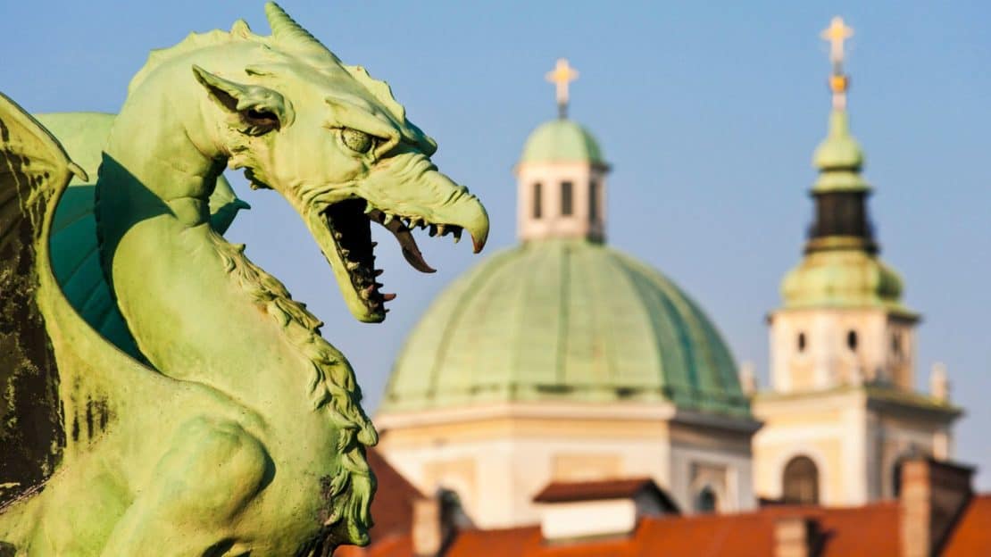 Ljubljana has not one but four dragons guarding the, er “Dragon Bridge” (one of the earliest asphalt bridges in Slovenia, if you’re into that kind of thing.) From paper dragons in China to scarlet flag-emblazoning ones in Wales, to patriotic dragon slayers called George in England and Jordi in Catalunya, I’ve never quite worked out why so many different cultures have such similar takes on this mythical, fire-breathing creature. But anyway, I digress. Ljubljana’s dragon is a key symbol of the city.