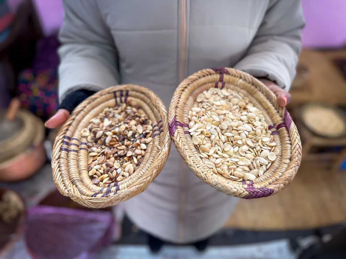 Since argan trees are only found in Morocco and parts of southwestern Algeria, it’s a hyper local product and you’ll find women’s cooperatives along the road with various different demonstrations.