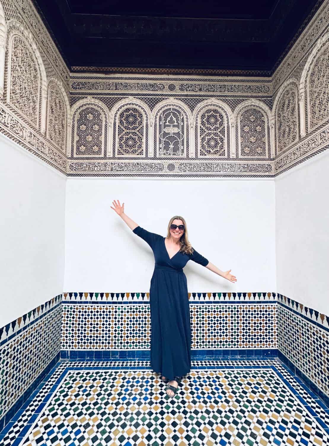She led us to a traditional, if grand, house in the heart of Marrakesh. One with tiles and balconies, an open courtyard inside and mirrors aplenty.