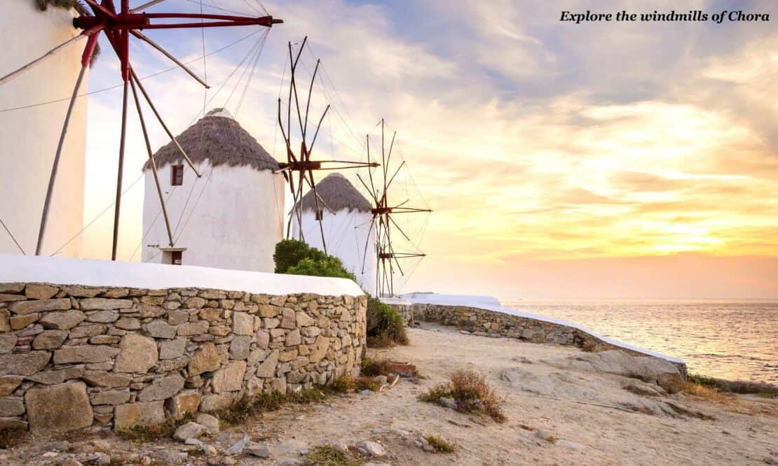 No visit to Mykonos Town is complete without exploring Little Venice, where colourful houses stand on stilts above the Aegean Sea, reminiscent of its Italian namesake. As the sun begins to set, find your perfect spot along the waterfront and witness the sky transform into a breathtaking canvas of orange and pink.