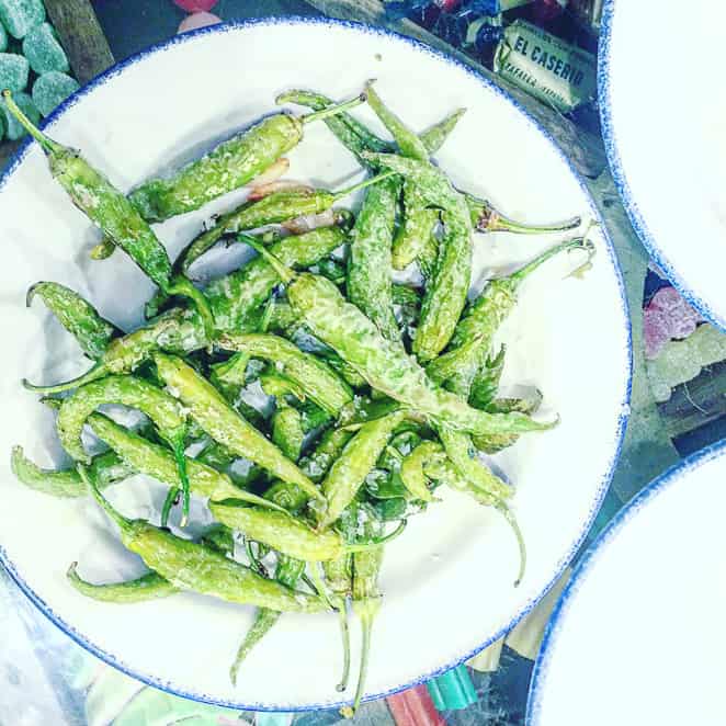 Pintxos (pronounced “pinsho”) typically comes stacked up along the bar. You choose the dishes you want and pay for them at the end according to the number of toothpicks or small plates you’ve acquired…