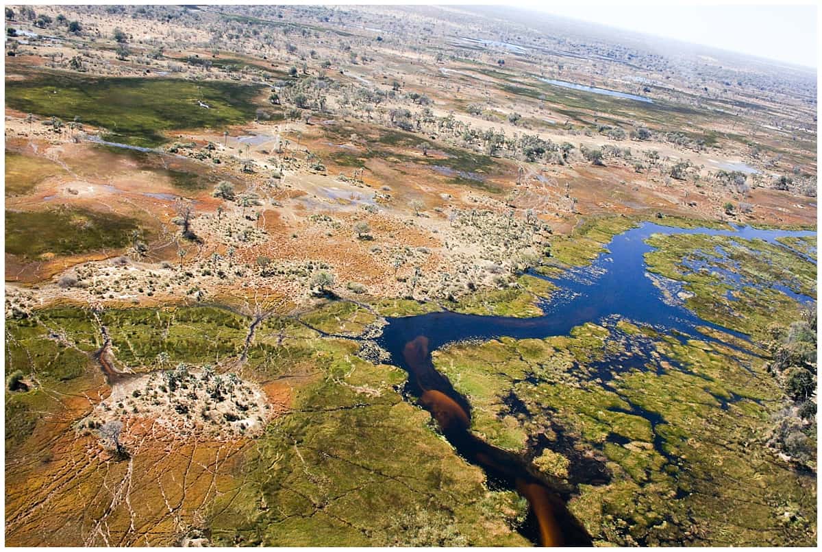 Eight hundred miles from the Atlantic and a thousand from the Indian Ocean, the Okavango Delta looks like a miniature version of the earth from the air, an expanded jigsaw of land swirls amid deep and spreading blue. Its water seeps up through the soil, having landed as monsoon rain a thousand miles north in Angola. It’s long been protected, both by government intervention and because its soggy, swampy nature makes building roads here impossible.