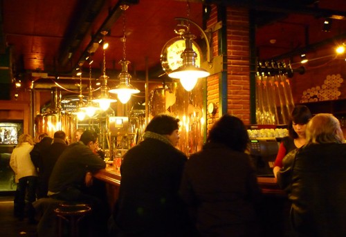 Not only did the inside deliver a toasty-warmness, but the menu did as well. Flammekueche – a dough base with lashings of cream, onions and smoky bacon – started to restore a sense of wellbeing. That and the blonde, blanche and amber beer.