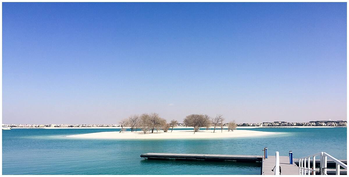 The coast at Ras Al Khaimah with an island of sand with trees