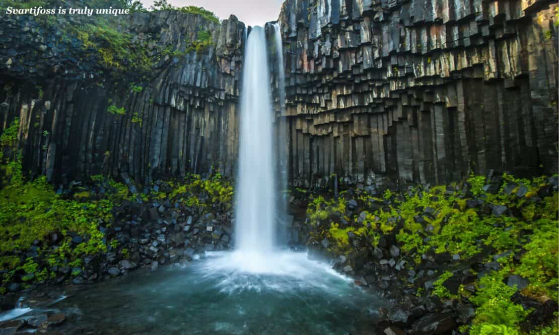 Here, cascading water tumbles over hexagonal basalt columns, a natural wonder that inspired Icelandic architecture, including the Hallgrímskirkja church in Reykjavík.