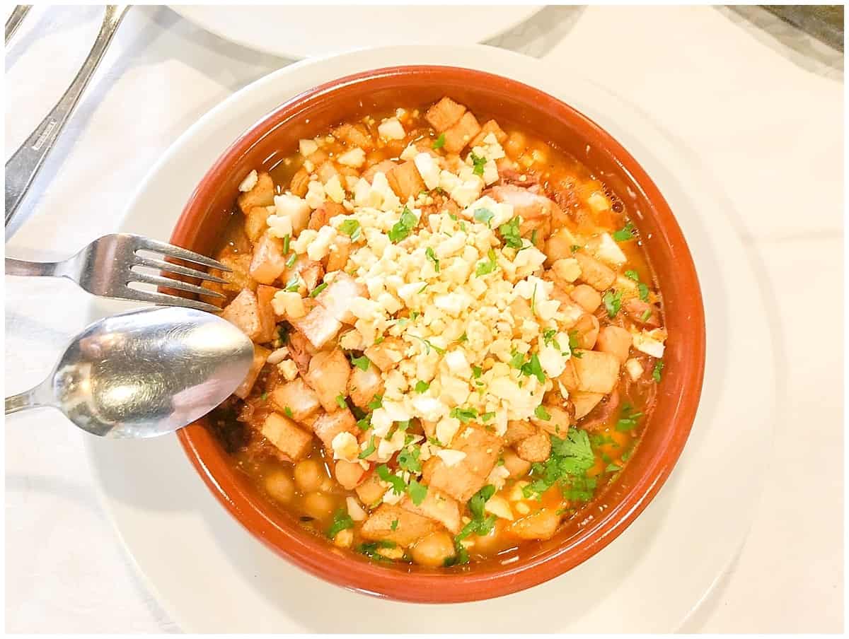 The meat, typically pork but also others, comes shredded in a rich tomato, onion and garlic broth with vegetables thrown in for good measure. Chick peas are a stable here, and you can also find it served with chopped boiled egg on the top.