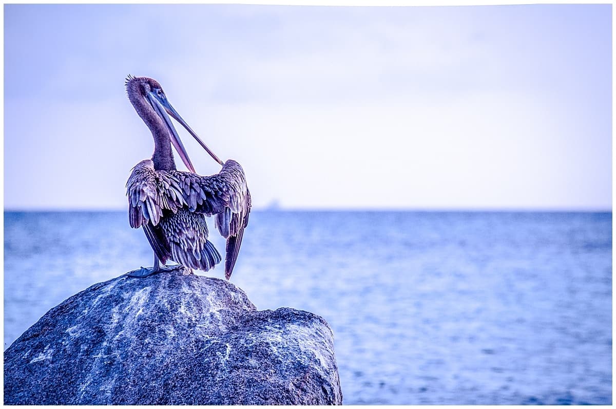 Pelican on rock in Aruba in the Caribbean