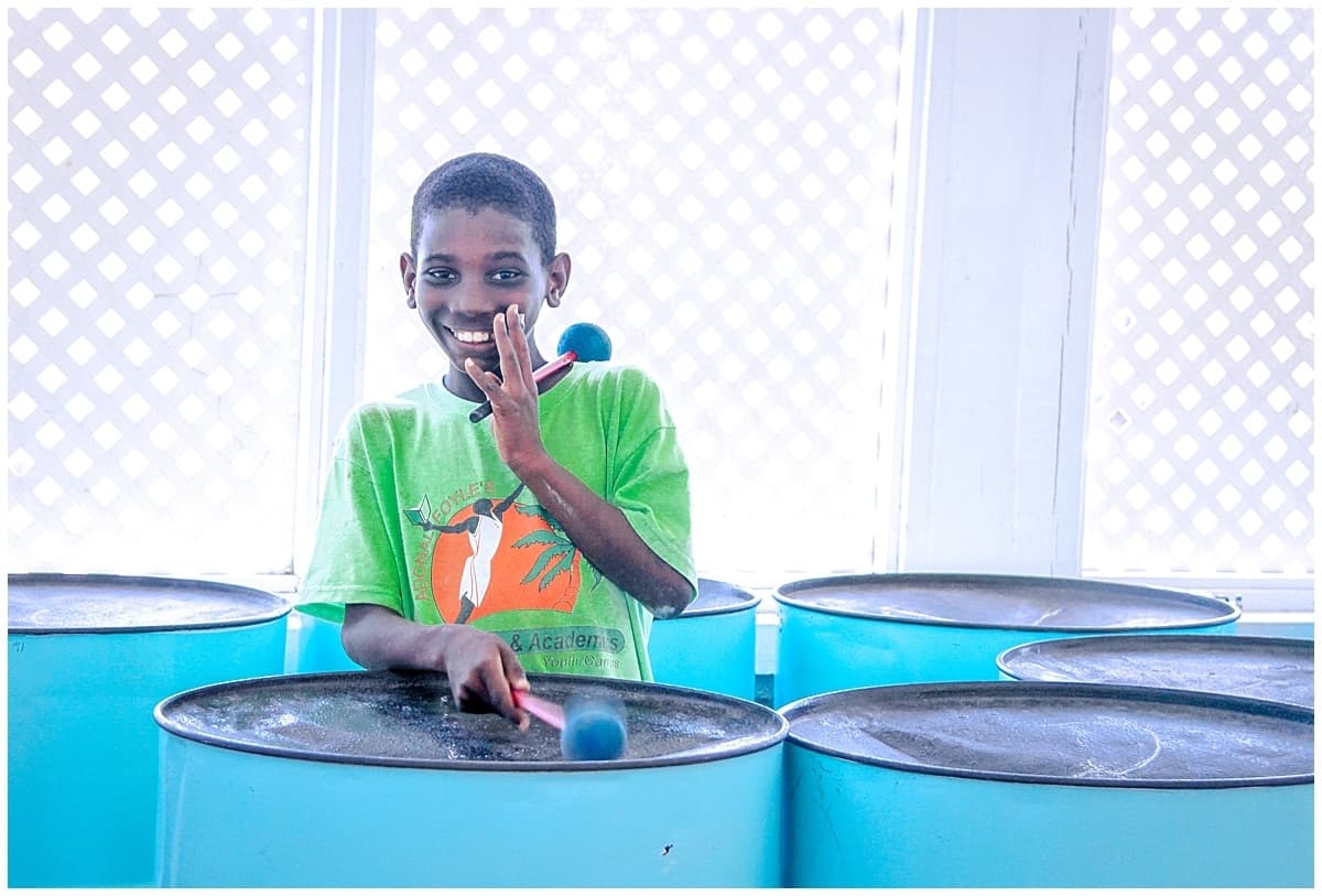 Boy plays steel band as an authentic travel experience in the best islands in the caribbean