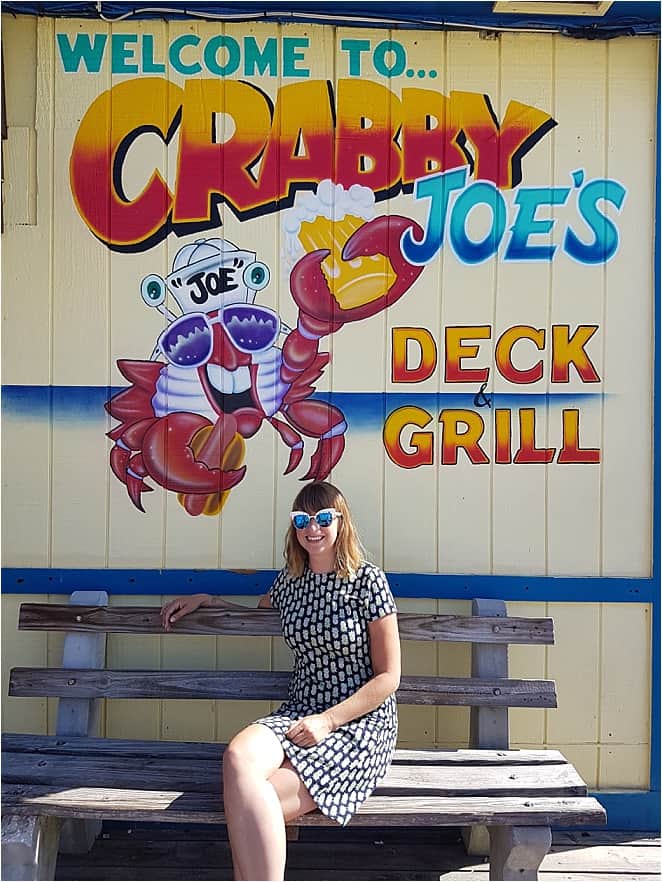 On Sunglow Pier, Crabby Joe’s dishes up the best breakfast in town. I order shrimp and grits (a creamy maize porridge) with smoky-sweet andouille sausage.