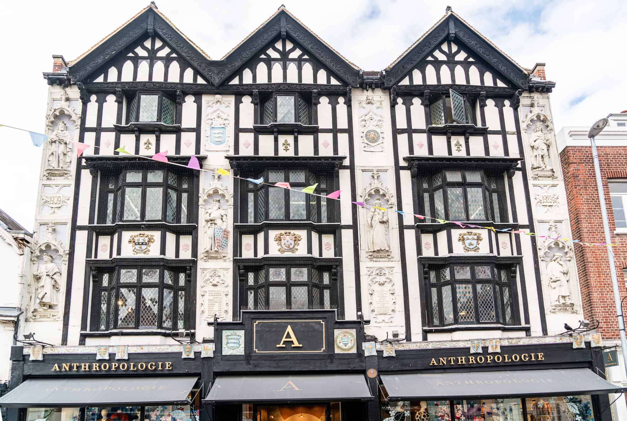 But all is not as it appears. Take the Jack Wills building above, full of dark Tudor beams and saints and shields. And although Hampton Court Palace, a Tudor stronghold, lies just across the river, this Tudor facade is, well, a facade.