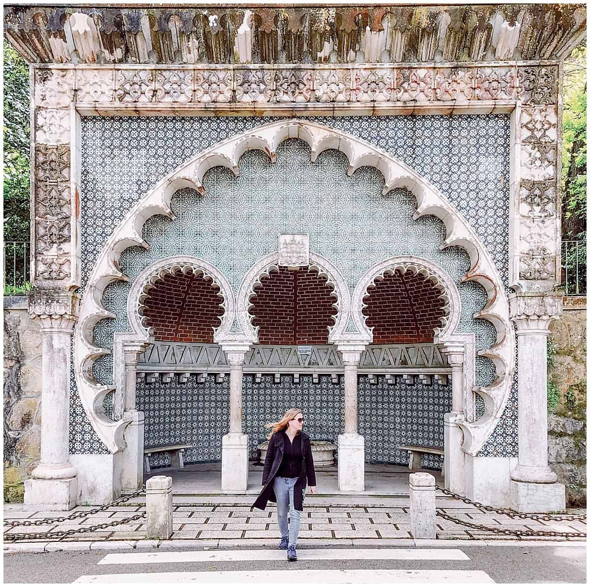 Portugal - Sintra - Abigail King travel writer in front of arches