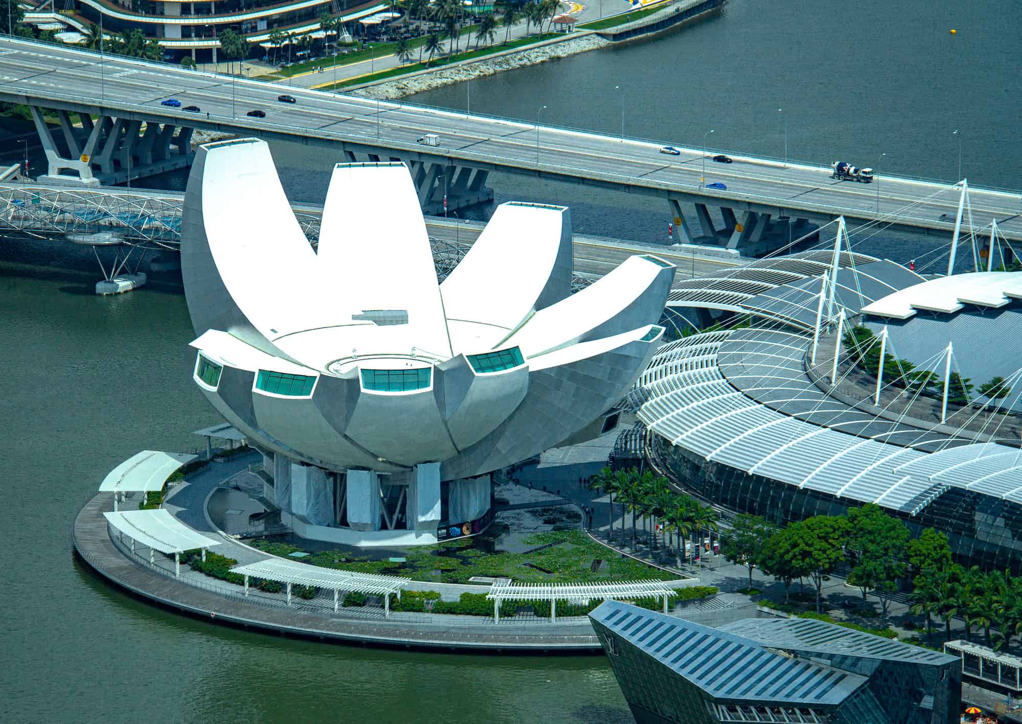 - In many other cities, the lotus-shaped, Moshe Safdie-designed ArtScience Museum would steal the headlines for its architecture. In Singapore, it’s part of the chorus line. While you can simply admire the building’s outline in the two day Singapore itinerary, with more time, you can venture indoors. Over 21 galleries showcase traveling exhibitions and also form some light relief from the sticky heat outside.