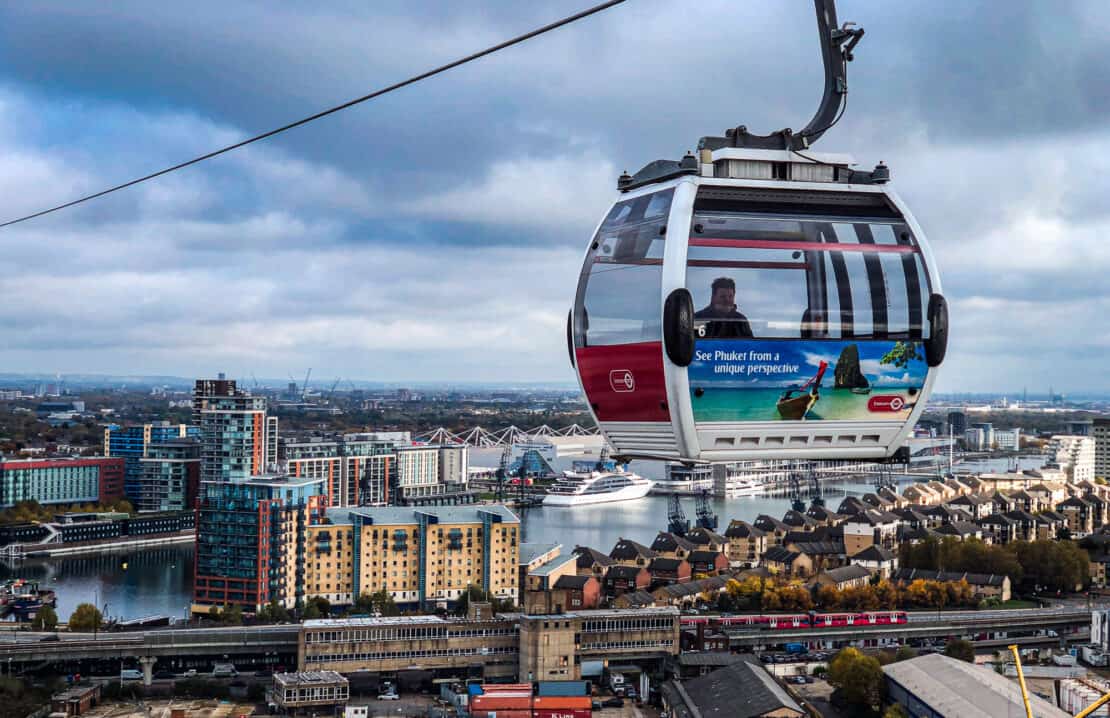 The IFS Cloud cable car in London scoops visitors up above the city as a cool mode of transport in the east end of London.