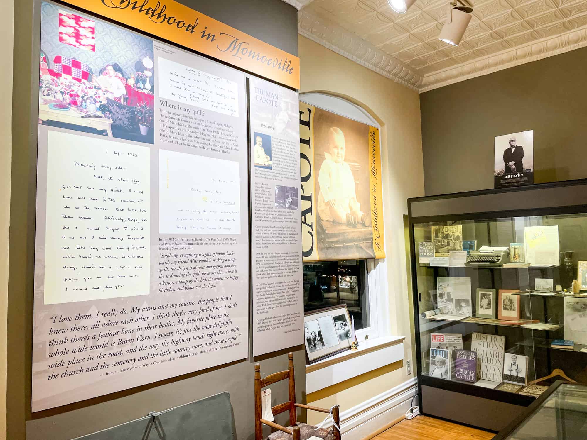 For all the international Mockingbird fame, it’s Capote who has the more stellar literary pedigree. As the author of In Cold Blood, A Christmas Story, and Breakfast At Tiffany’s, it’s fascinating to visit his hometown and see artefacts from his and his family’s past, from blue glass to faded photographs.
