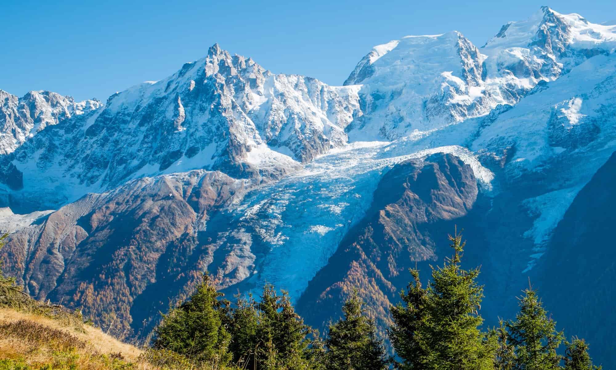 Mont Blanc or the “White Mountain” is the highest mountain in the French Alps.