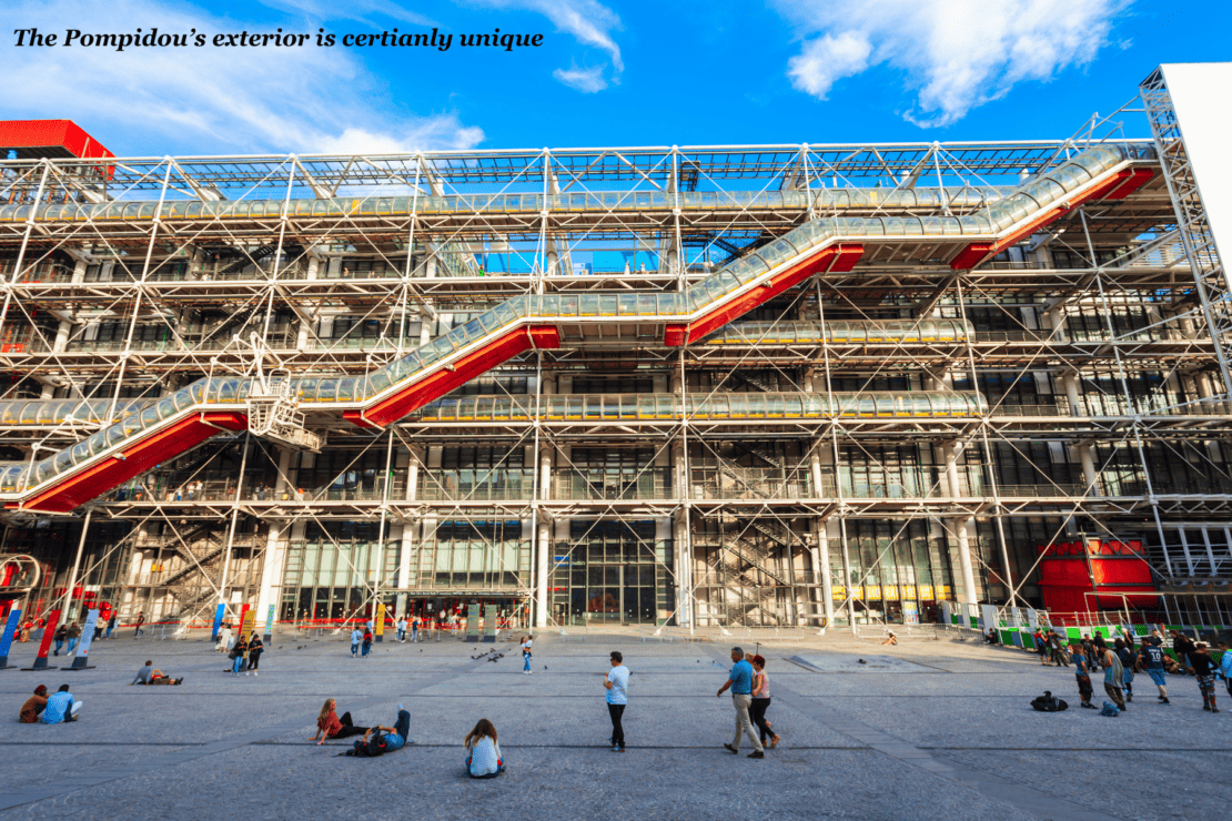 When in Paris, you’ll immediately spot the Pompidou Centre by its unusual exterior, with red tubes that serve as a large escalator to move people in and out of the building. The building’s unique design, with all its electrical wires, plumbing, pipes, and air circulation elements outside, colour-coded for easy identification, perfectly matches the museum’s modern and diverse theme.
