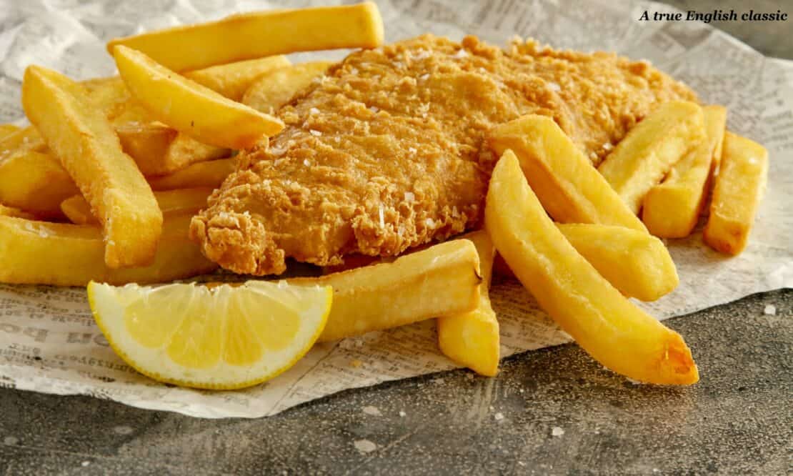 You’ll find this dish across the country, particularly at seaside resorts, but it’s common enough in London too. Fish, typically cod, comes fried in batter and served with chips. Traditionally, it comes wrapped in newspaper but these days you’re more likely to be handed a plain paper cone or, even more bizarrely, fake newspaper print.