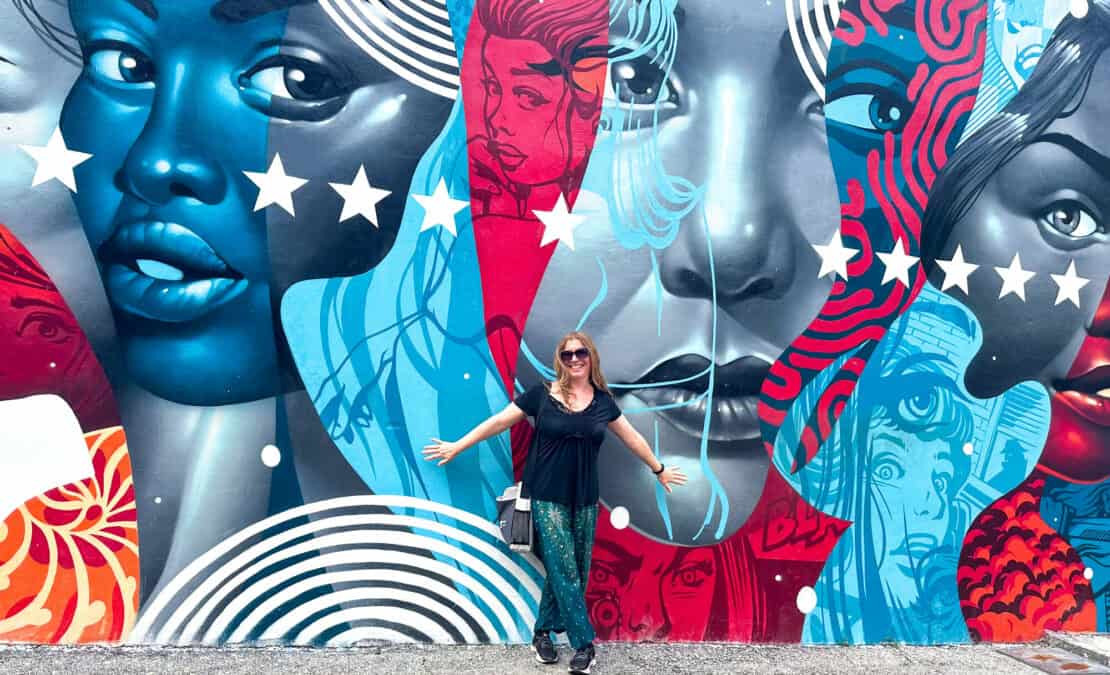 Abigail King in front of a street art mural in Wynwood, Miami USA